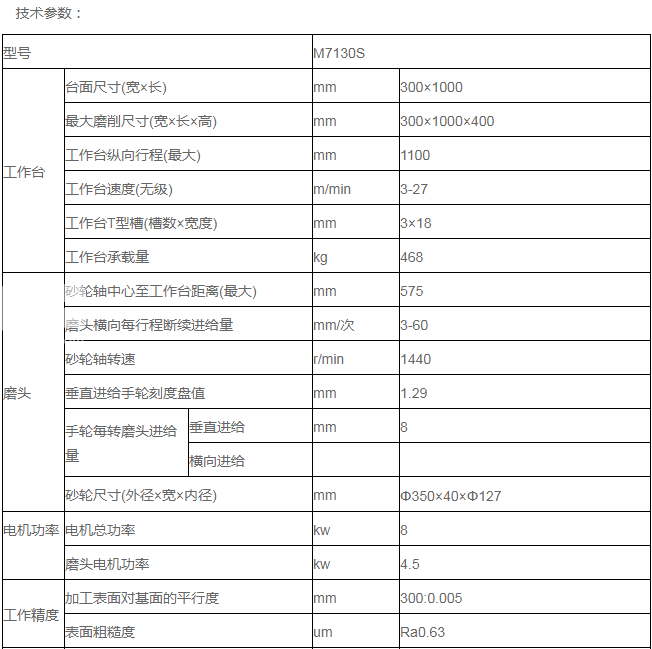 平面磨床工作臺(tái)尺寸范圍:寬度200-1000mm,長(zhǎng)度1000-8000mm.主要型號(hào):M7130平面磨床,M7140平面磨床,M7150平面磨床,M7163平面磨床,M7180平面磨床