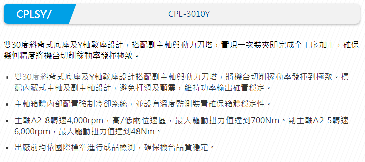 產(chǎn)品型號:CPL-3010Y車銑復(fù)合機(jī)床|CPL-3010Y車銑復(fù)合機(jī)床|CPL-3010Y車銑復(fù)合機(jī)床|CPL-3010Y車銑復(fù)合機(jī)床|CPL-3010Y車銑復(fù)合機(jī)床|